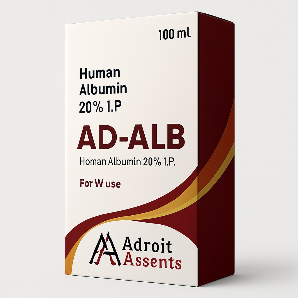 Ad-ALB 20% is a nonpyrogenic, sterile aqueous solution of Human Albumin I.P. for intravenous administration and is purified from pooled human venous plasma using a series of chromatography steps.